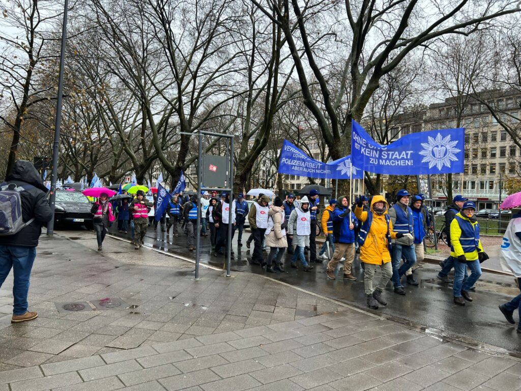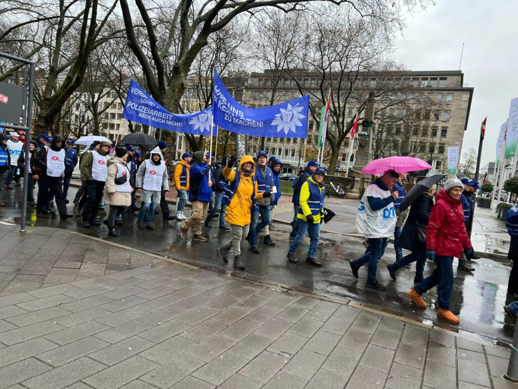 So lief die Großdemonstration am 05.12.2023 vor dem Düsseldorfer Landtag unter dem Motto „Ohne uns ist kein Staat zu machen!“ sowie „Verbrechen lohnt sich nicht. Polizei auch nicht!“ im Tarifstreit vor der 3. Tarifrunde. Im aktuellen Tarifstreit im öffentlichem Dienst hatten 15.000 Beschäftigte des Landes ihren Weg nach Düsseldorf gefunden und sind geschlossen im Rahmen einer zentralen Kundgebung vor dem Düsseldorfer Landtag aufgetreten. So auch wir vom Kreisverband Bochum. Nach wie vor liegt kein Angebot der Arbeitgeber vor. Alle wesentlichen Forderungen und Erwartungen sind bis dato vehement abgelehnt worden. Seitens der Arbeitgeber seien die Forderungen zu hoch und mitunter unangemessen und nicht finanzierbar, so heißt es. Obwohl nachweislich die Landeskassen durch die erfolgreiche Wirtschaft der Kommunen sind gänzlich gefüllt sind.